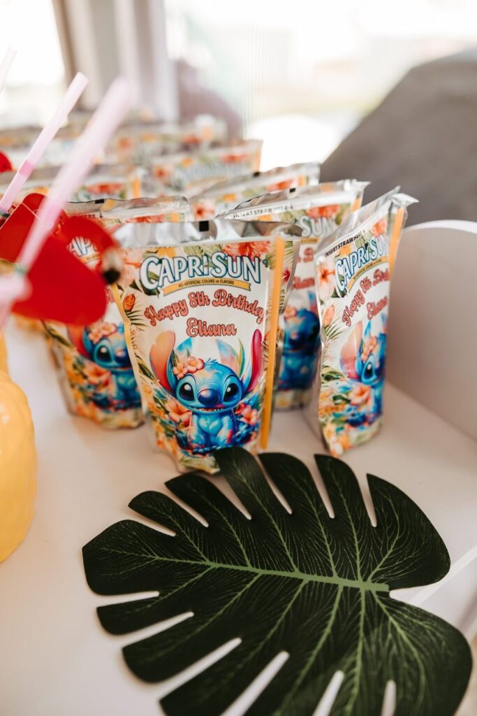 The best slumber parties include little extras that surprise and delight guests. Create custom welcome signs or name tags with a Hawaiian twist. Offer personalized sleep masks in the party colors or themed goodie bags filled with tropical stickers, mini bubbles, and Stitch keychains. These thoughtful touches show your guests that every detail has been considered and elevate the event from a simple sleepover to a full immersive experience.