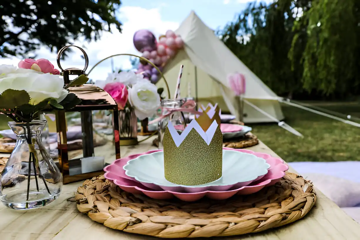 Glamping blends the calm of the outdoors with hotel-style comfort. We transform your space with fully decorated bell tents—soft layers, warm light, and cohesive styling—so guests can relax, celebrate, and sleep comfortably without leaving home.