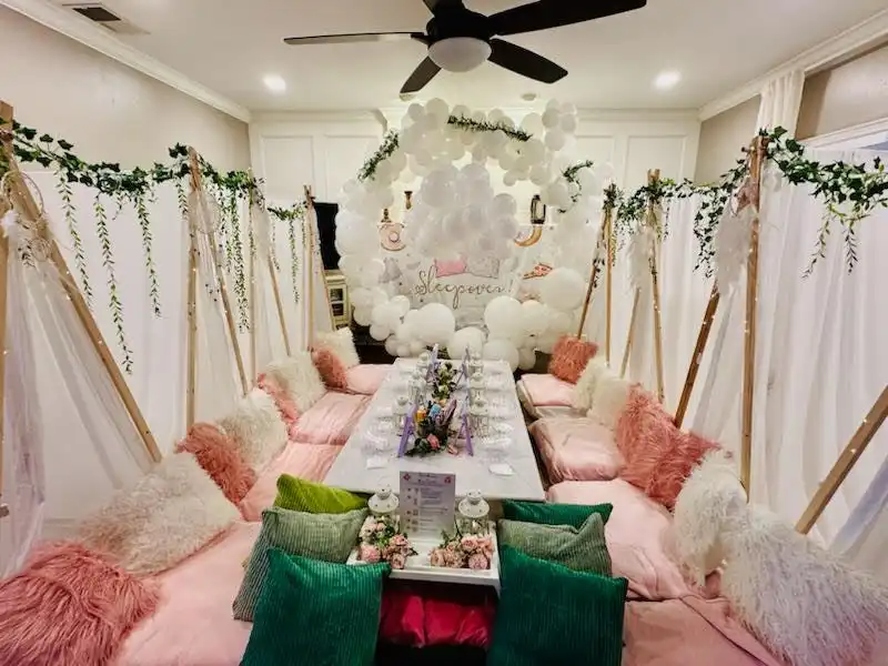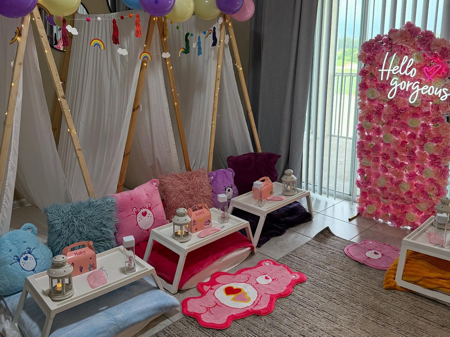 Bring a boutique sleepover to your living room. The Ultimate Teepee Package is a fully hosted, luxury setup with soft bedding, fairy lights, and personalized details—styled, delivered, and cleaned up by Slumberr.