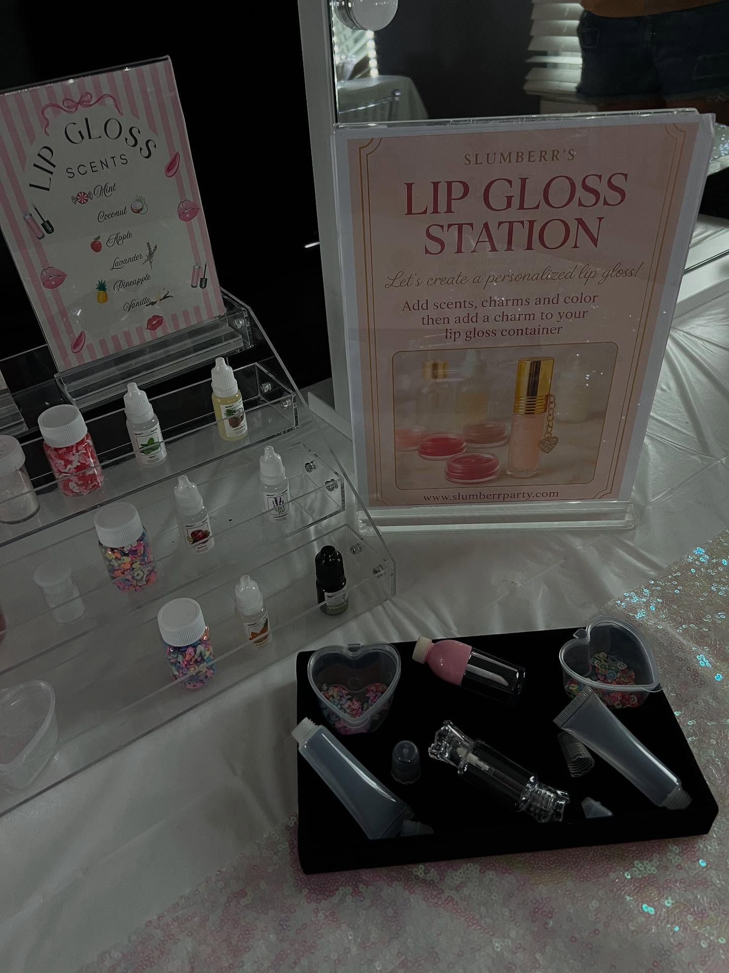 Want to give your guests the full spa day experience? Combine our lip gloss station with the spa table.