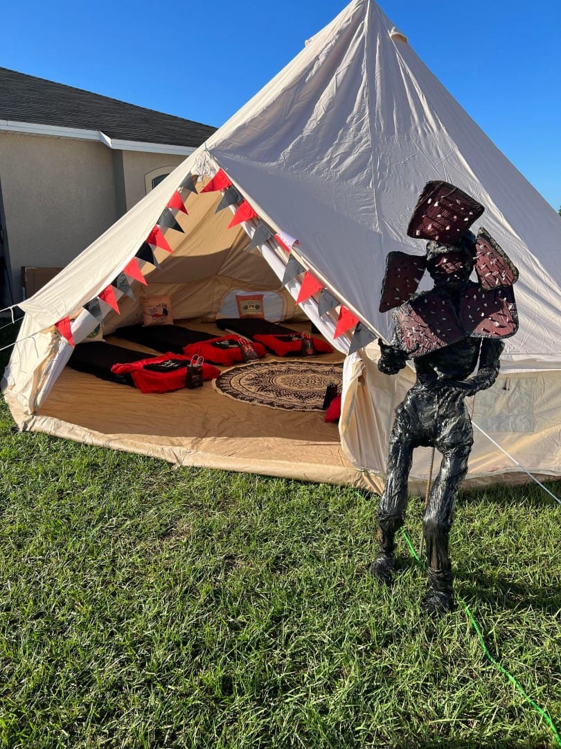 Each bell tent is designed with high-quality materials and equipped with plush bedding, cozy lighting, and elegant décor to ensure the ultimate outdoor experience. Choose from a variety of personalized themes to match your occasion, whether you’re celebrating a birthday, hosting an event, or simply enjoying a relaxing getaway.
