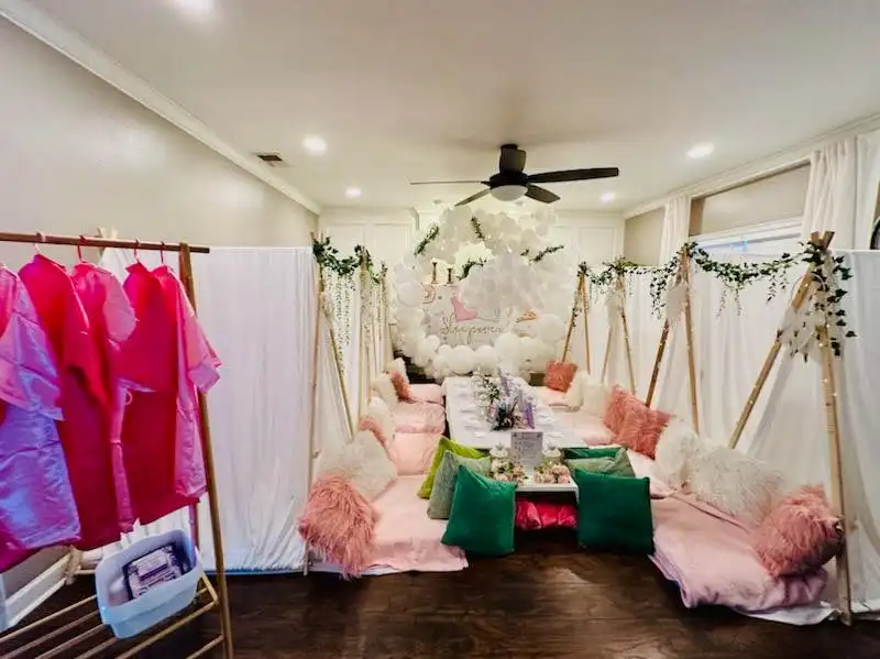 Transform your backyard into a luxury glamping experience with our Backyard Glamping Package! Perfect for birthday parties, family gatherings, or special events, this stylish outdoor setup blends the beauty of nature with the comfort of home. Whether for kids or adults, our glamping tents provide a magical and unforgettable outdoor party.