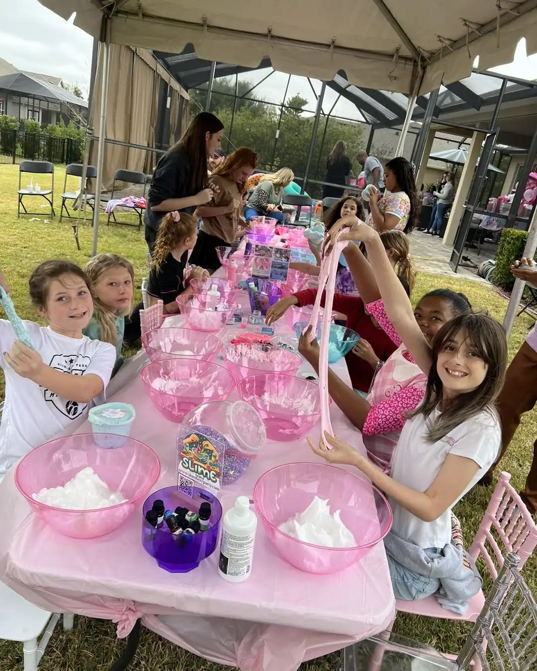Our dedicated party host will guide the fun, ensuring the kids stay engaged while you enjoy a hassle-free event. We provide all the setup and cleanup, so you can focus on making memories. Plus, each guest gets to take home their unique slime creations as party favors!